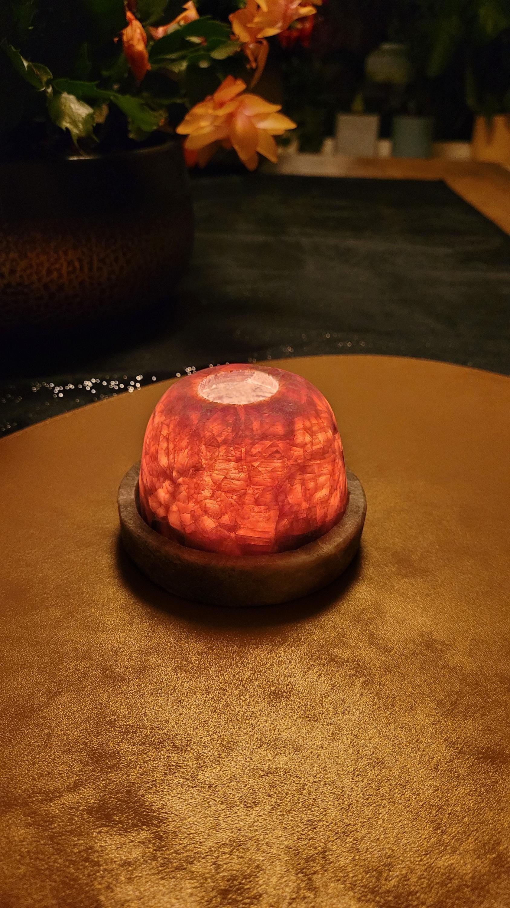 Een charmante theelichthouder, handgemaakt van natuurlijke bruine albast, geleverd met een bijpassend schoteltje. De warme gloed die door de albast straalt creëert een knusse en rustieke sfeer, perfect voor gezellige avonden en decoratieve accenten in huis. Het schoteltje zorgt voor extra veiligheid en een stijlvolle afwerking. Dit prachtige decorstuk wordt geleverd in een unieke geschenkverpakking, perfect om cadeau te geven! 🎁