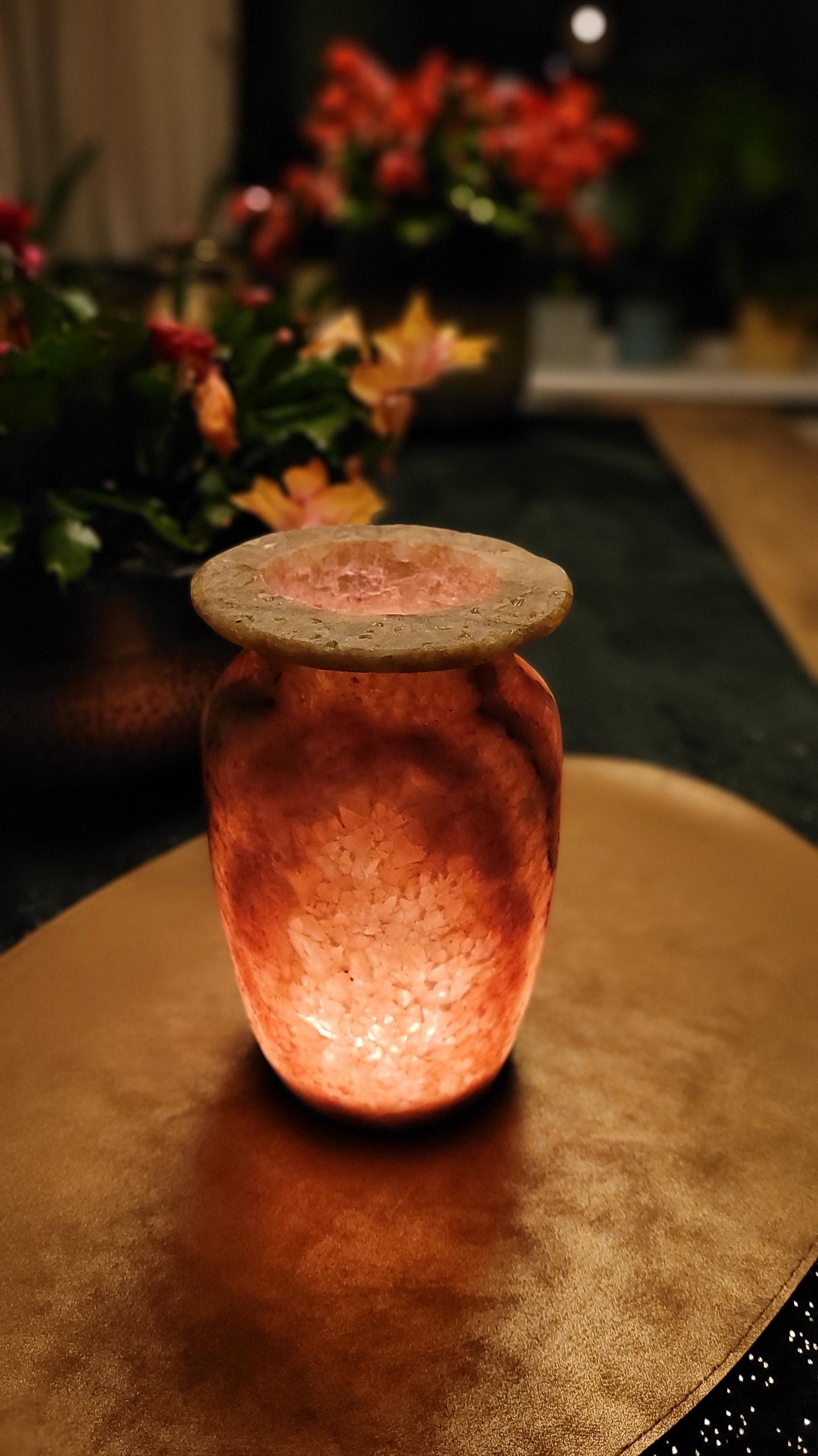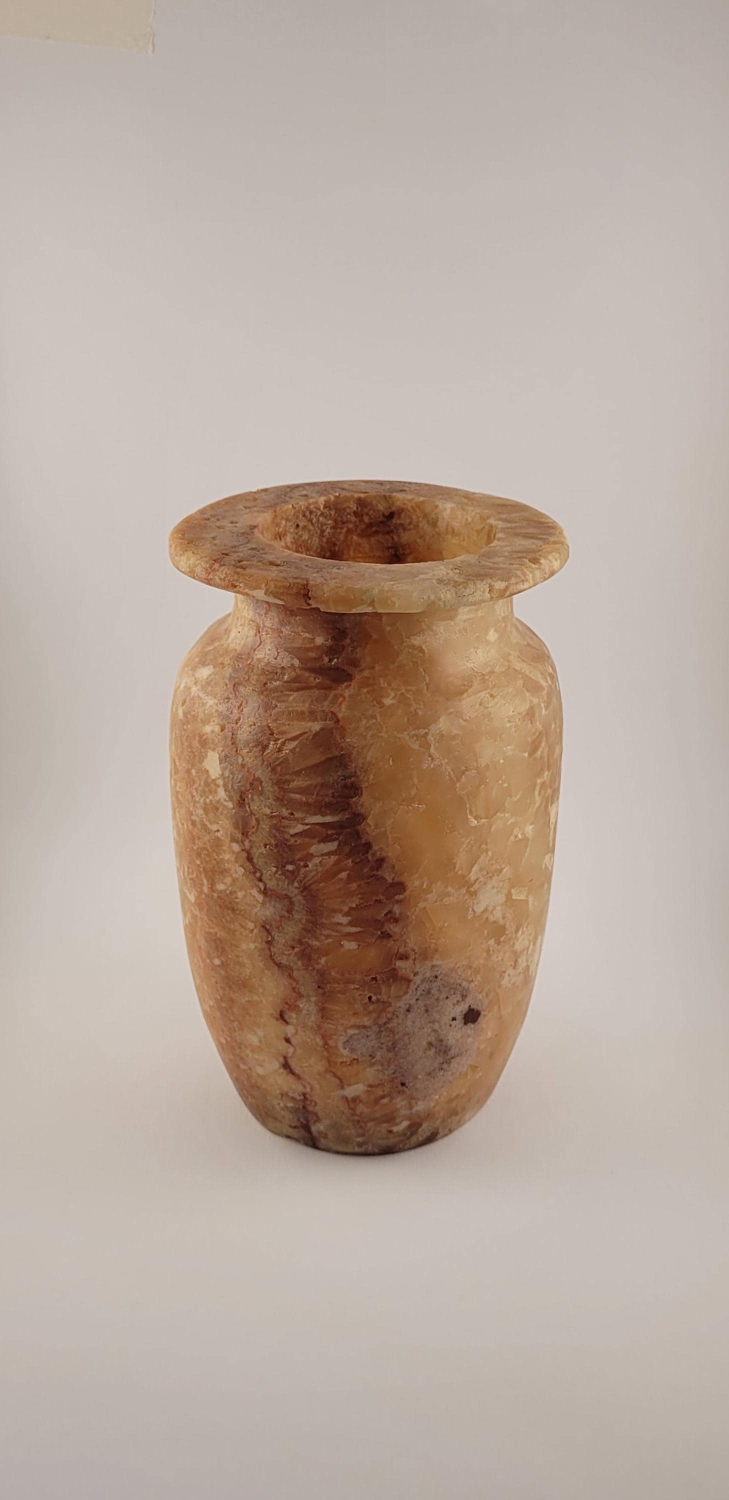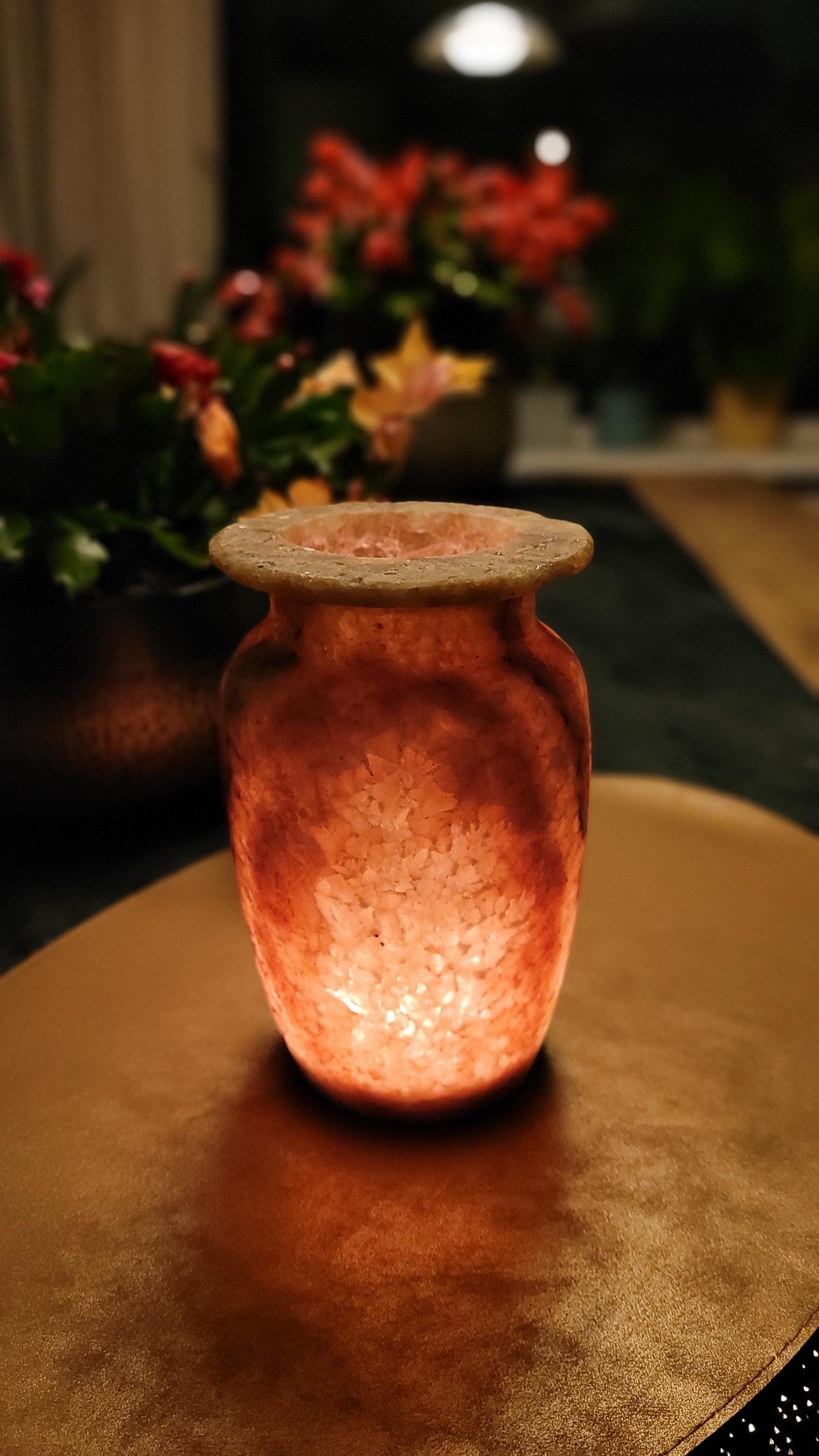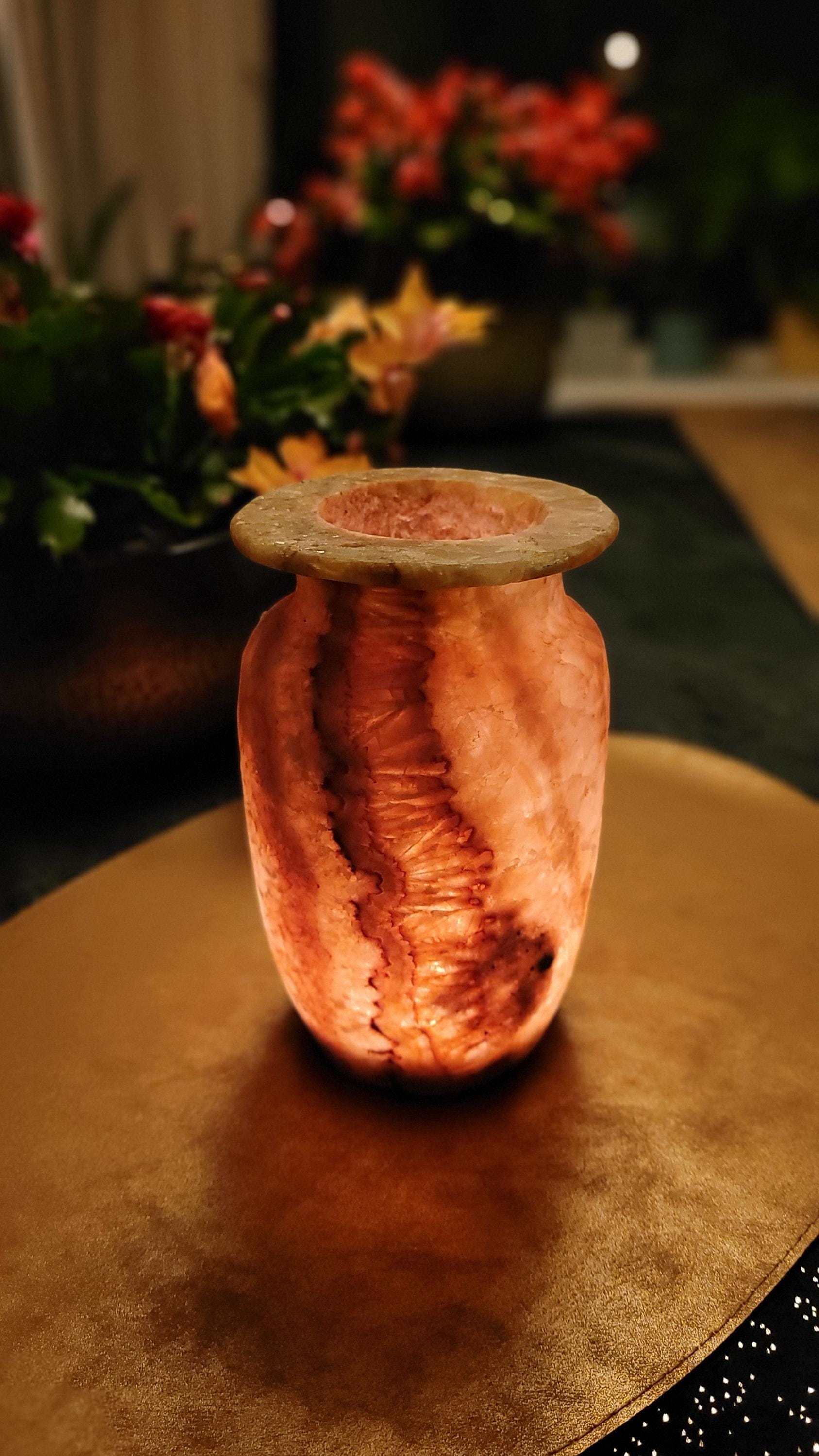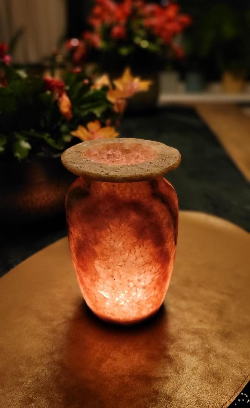 Met zijn zachte verlichting en verfijnde details straalt deze 17.5 cm alabaster vaas tijdloze elegantie uit. Perfect als decoratief pronkstuk, brengt het warmte en natuurlijke schoonheid in je interieur. Dit prachtige decorstuk wordt geleverd in een unieke geschenkverpakking, perfect om cadeau te geven! 🎁