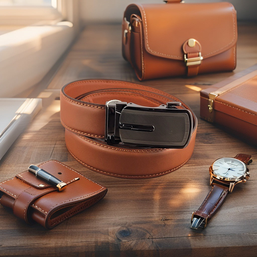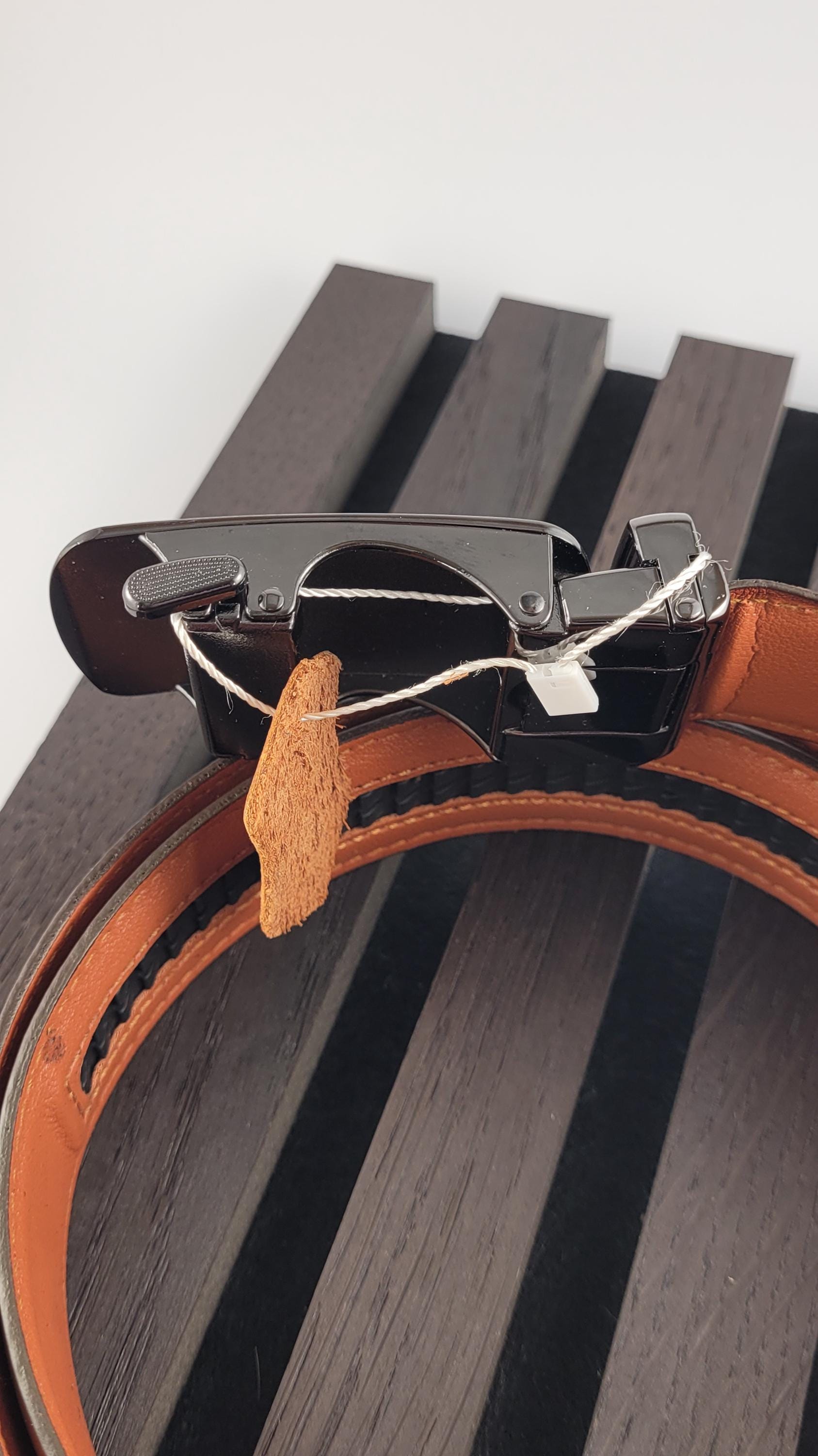 De automatische zwarte gesp geeft een moderne en strakke afwerking, terwijl de warme leerkleur moeiteloos combineert met zowel formele als casual outfits.