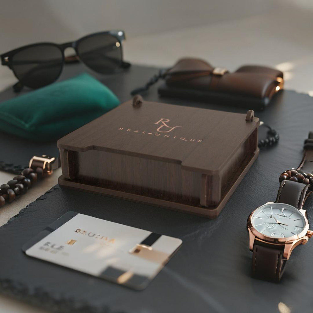Verpakt in een luxe houten geschenkdoos – ideaal als stijlvol cadeau. 🌑💜