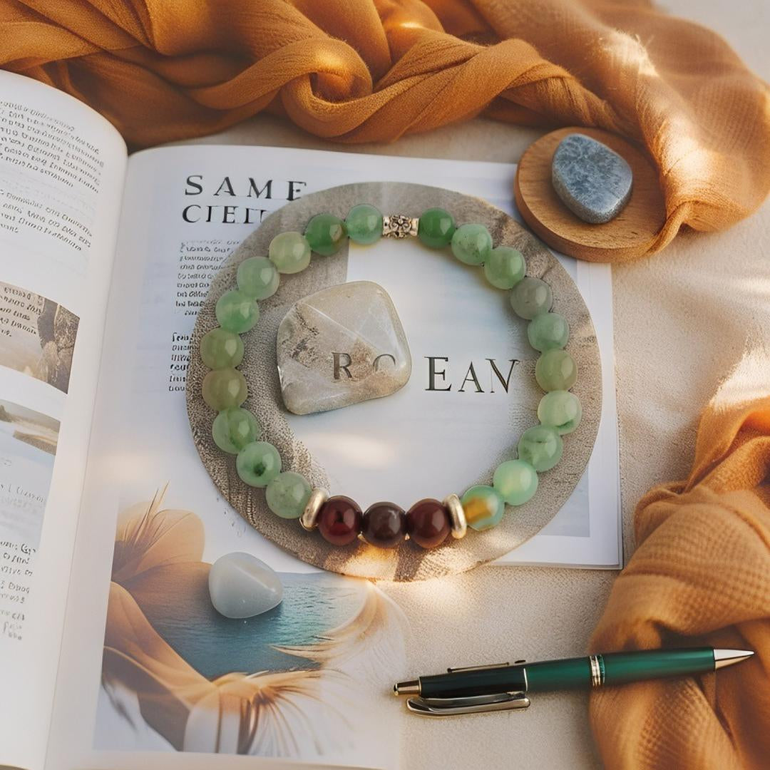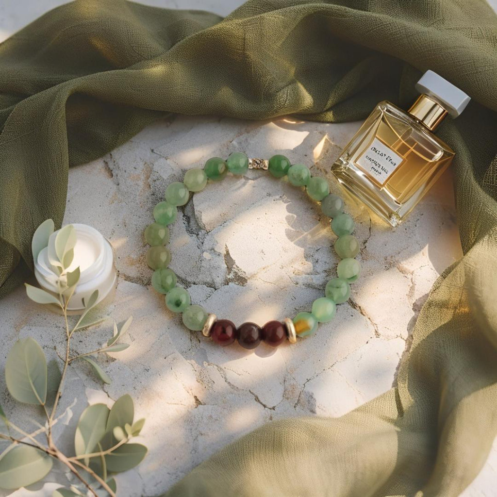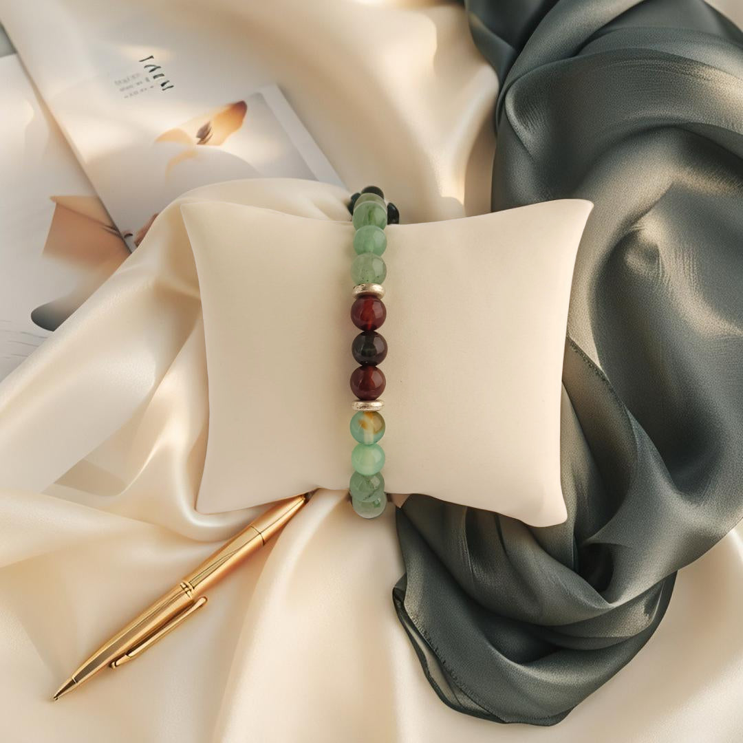 De 8mm edelstenen stralen natuurlijke balans uit en maken deze armband tot een stijlvolle accessoire voor elke gelegenheid.