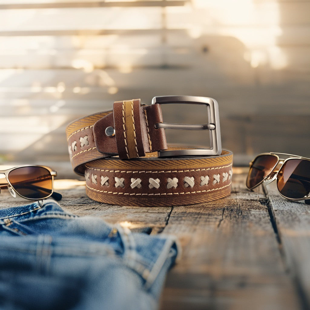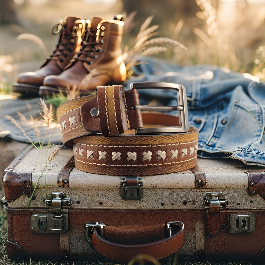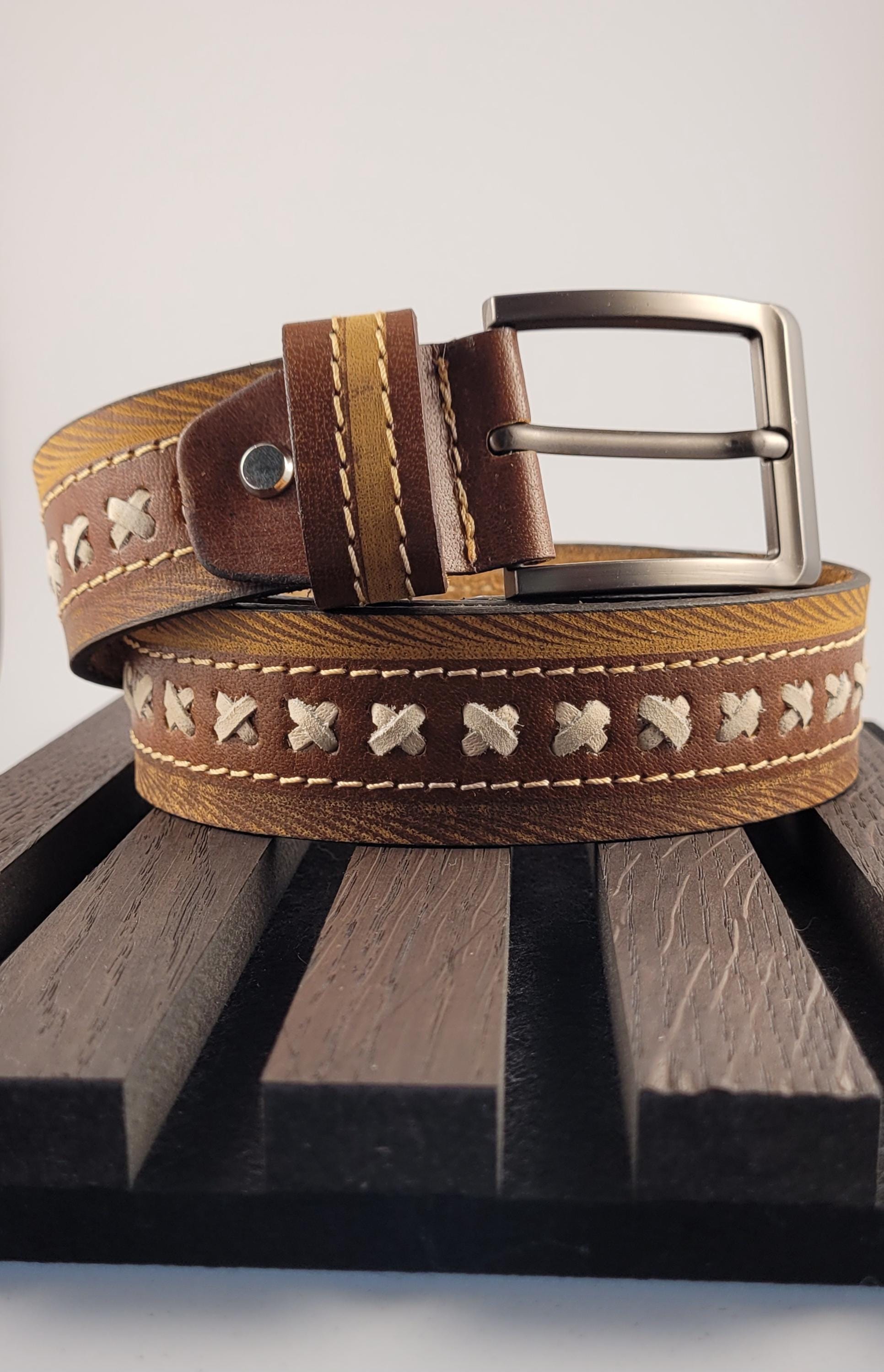 Deze cognacbruine riem met contrasterend kruisstiksel combineert robuuste elegantie met een vintage uitstraling. Gemaakt van echt leder en afgewerkt met een stevige metalen gesp, is dit de perfecte keuze voor mannen die op zoek zijn naar een opvallend accessoire dat karakter en stijl uitstraalt.